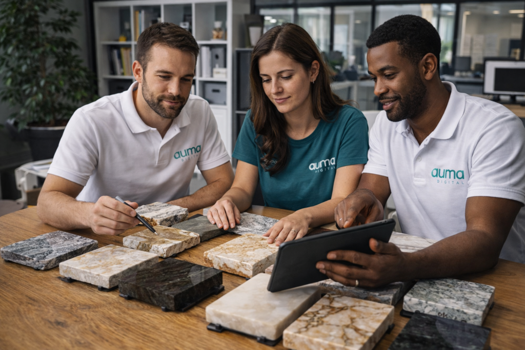 A Auma Digital estrutura essa infraestrutura para exportadores de rochas ornamentais que querem crescer nos mercados internacionais com método, não com sorte.